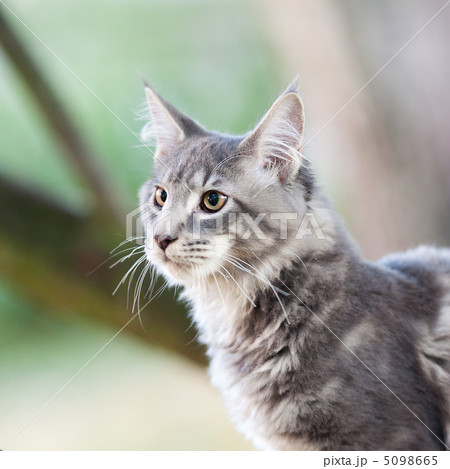 beautiful striped maine coon cat in nature