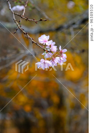 埼玉県飯能市のさわらびの湯付近に咲く十月桜と紅葉