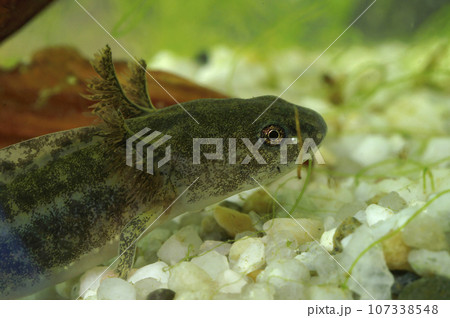Closeup on a larvae of Ambystoma macrodactylum, Longtoed salamander with gills
