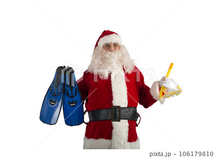 santa claus vacations by the sea with fin and snokeling mask