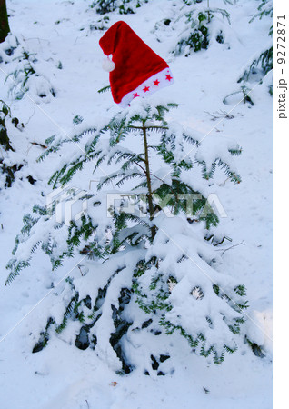 Santa Claus Hat on snowy fir