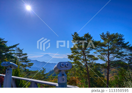 秋の山梨県甲府市昇仙峡のロープウェイ山頂駅にある浮富士広場から南側の眺望