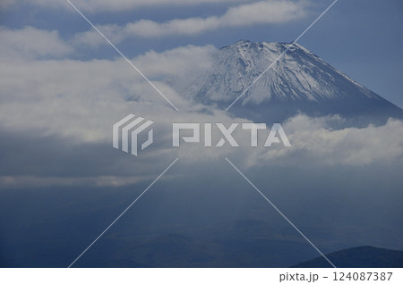 御坂山地の三方分山山頂より 雲に紛れる富士山