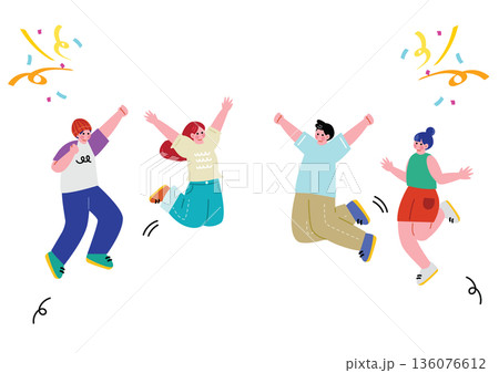 ベクターイラスト素材:ジャンプして喜ぶ人物たち、楽しい