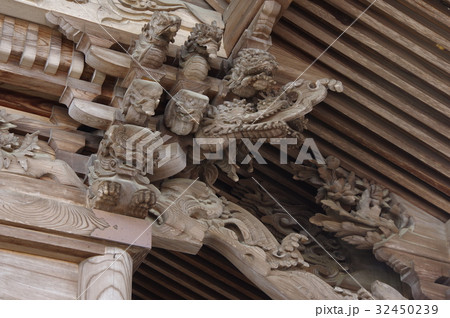 信州 塩尻 北熊井神社 後方連三斗部の彫刻 横 大隅流の名工 柴宮矩重の作 長野県宝指定