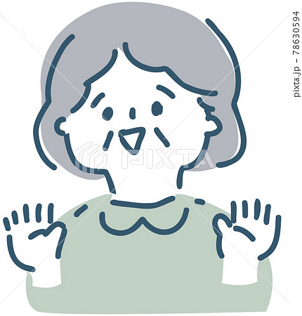 ゆるい線で描いた笑顔で喜ぶ高齢者の女性