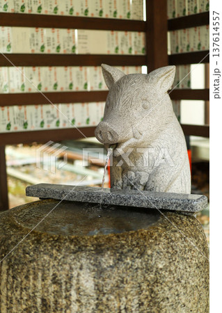 猪の手水舎 / Boar water fountain at Japanese shrine