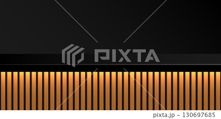 Bar counter limbo black background. Dark backdrop with dark wall and countertop of vertical golden light wooden planks. Luxury interior element for lounge, restaurant, nightclub. Vector illustration
