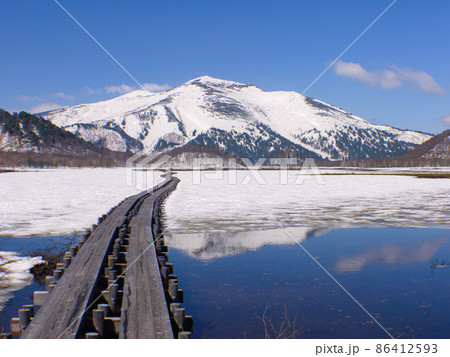 春の尾瀬・残雪に覆われた尾瀬ヶ原