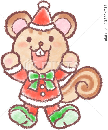 リス二匹_赤いマフラーを巻いたリスと緑のマフラーを巻いたリス