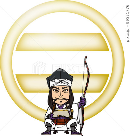 弓矢を携え床几に座る今川義元【3頭身・白黒・ベクター】