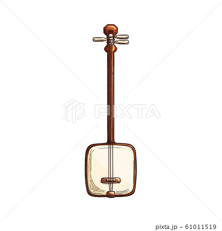 Traditional Japanese musical string instrument. Shamisan. Vector illustration.