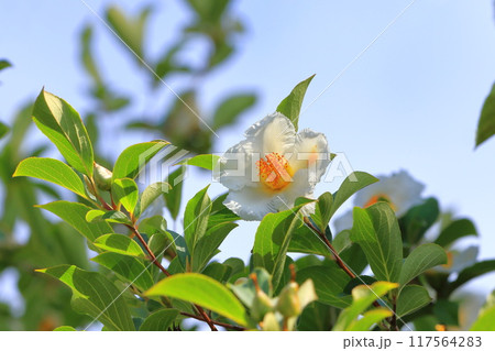 白い夏椿(ナツツバキ)の花