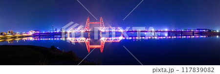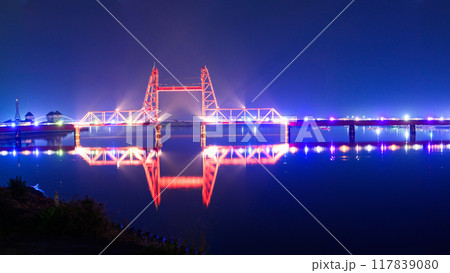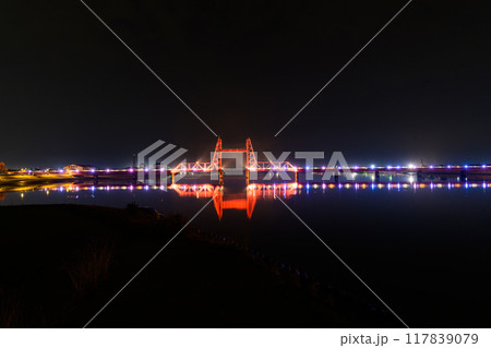 佐賀県/ ライトアップされた夜の筑後川昇開橋(夜景)