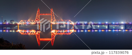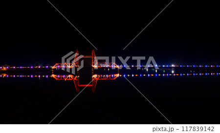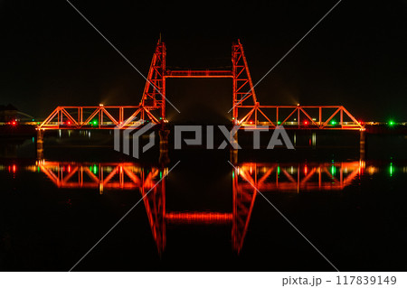 昇開橋ライトアップ風景 筑後川昇開橋(ちくごがわしょうかいきょう)佐賀市諸富「佐賀県と福岡県の県境」