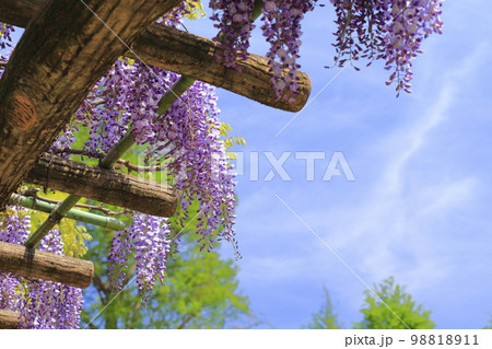 青空と紫色の藤の花