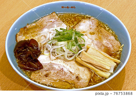 普通の醤油ラーメン Food of soy sauce ramen Japan