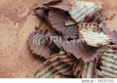アカシアプレートに乗せたギザギザカットの抹茶チョコポテトチップス