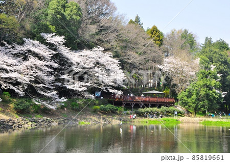 桜満開の大和市泉の森しらかしの池