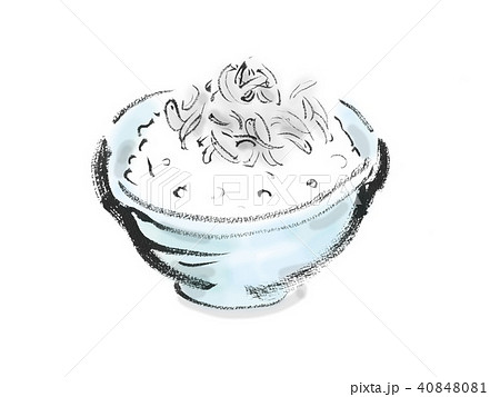しらすをかけたご飯と箸 和食の手描き水彩イラスト素材