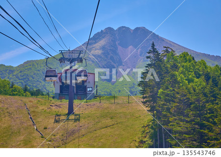 初夏の朝の群馬県利根郡片品村のロープウェイから日光白根山方面を見る