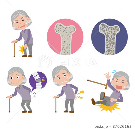 後ろに倒れ怪我をする年配の女性(全身):イラスト素材