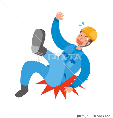 後ろに倒れ怪我をする年配の男性(全身):イラスト素材