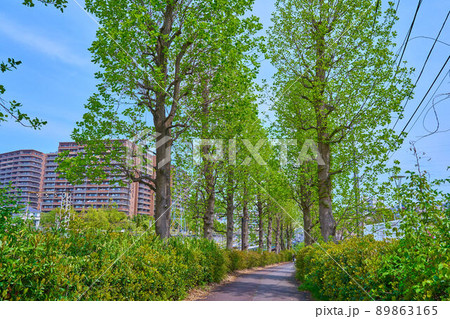 神奈川県川崎市麻生区の万福寺大橋付近の万福寺1丁目と2丁目の境にあるユリノキ並木