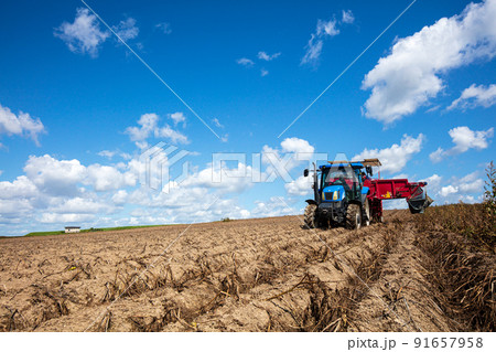 北海道のじゃがいもの収穫風景