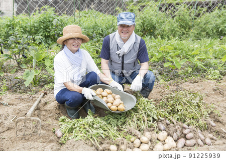 野菜を作る女性 家庭菜園、野菜作り、じゃが芋掘り