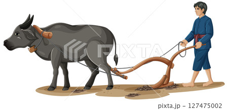 Traditional Farming with Water Buffalo and Farmer