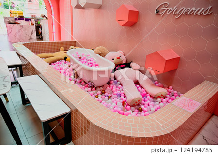 台灣宜蘭2022年4月9日:免子迷宮餐廳在宜蘭縣礁溪鄉(夢幻粉紅系咖啡廳)