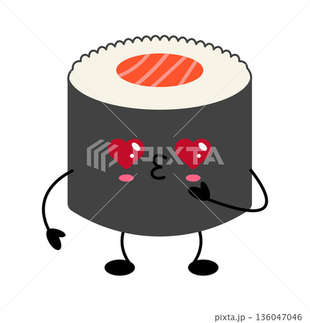 Cute Kawaii Sushi Roll Character Illustration