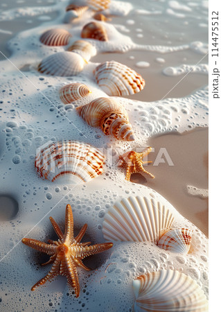 Seashells scattered on a sandy beach