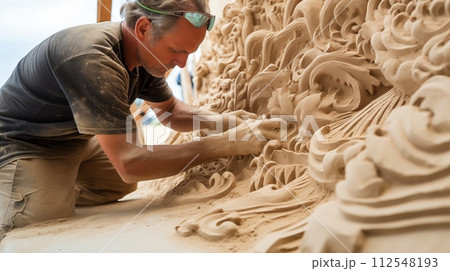Crafting tranquil landscapes in artistic sand garden creation.AI Generated
