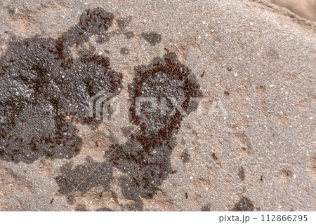 Ants surrounding stains of a sweet limonade