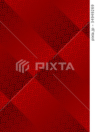 和風背景素材 赤と金の青海波模様 縦長