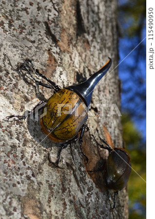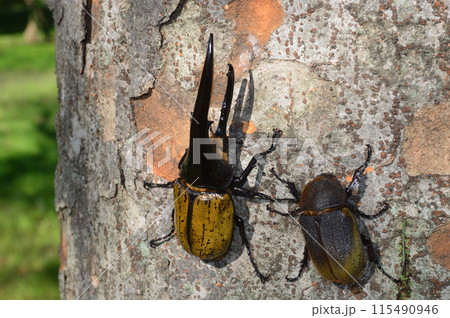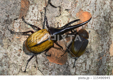 ヘラクレスオオカブトのヘラクレスヘラクレスのオスとメス 森の樹木の上で