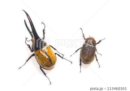 ヘラクレスオオカブトのヘラクレスヘラクレスのオスとメス 白背景