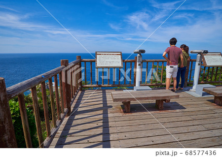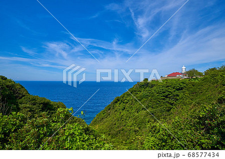 島根半島突端に立つ美保関灯台の遊歩道から見た北側の日本海