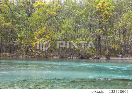 五色沼の中で青く透明度が高い青沼(銅沼系)に流れる清らかな水