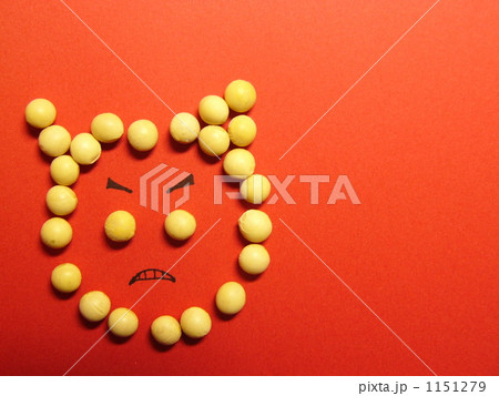 大豆でかたどった鬼の顔 節分イメージ