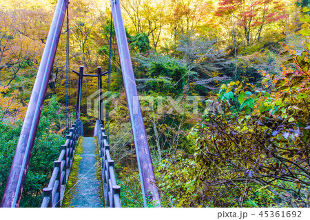 全国的に知られた紅葉の名所 九州熊本県八代市泉町 五木五家荘の紅葉とせんだん轟の吊り橋