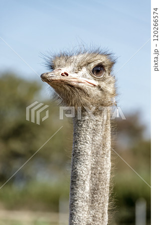 世界最大の鳥で凛としたダチョウの顔つきが勇ましい