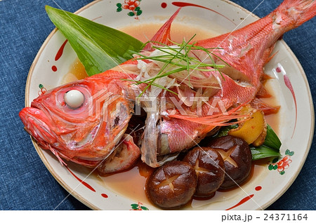 国産の金目鯛(キンメダイ)、魚の煮付け料理。煮魚、和食。