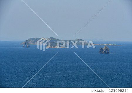 角力灘に浮かぶ島々 長崎県外海の青い海と空