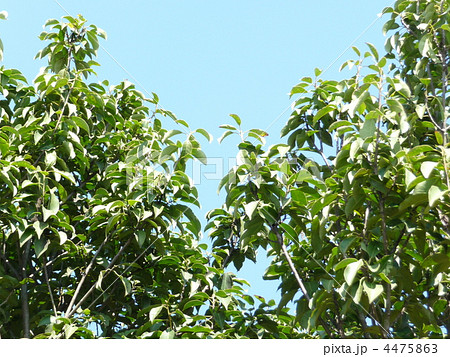 常緑樹ソヨゴと春の空 Evergreen llex pedunculosa and the spring sky