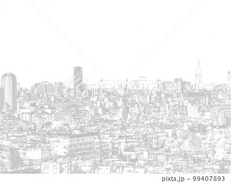 東京の街並み。俯瞰風景。イラスト風の写真。シティポップ調。