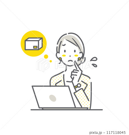 荷物の受け取りを心配する仕事中の女性 シンプルでお洒落な線画イラスト