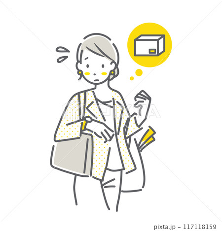 荷物の受け取りを心配する帰宅途中の女性 シンプルでお洒落な線画イラスト